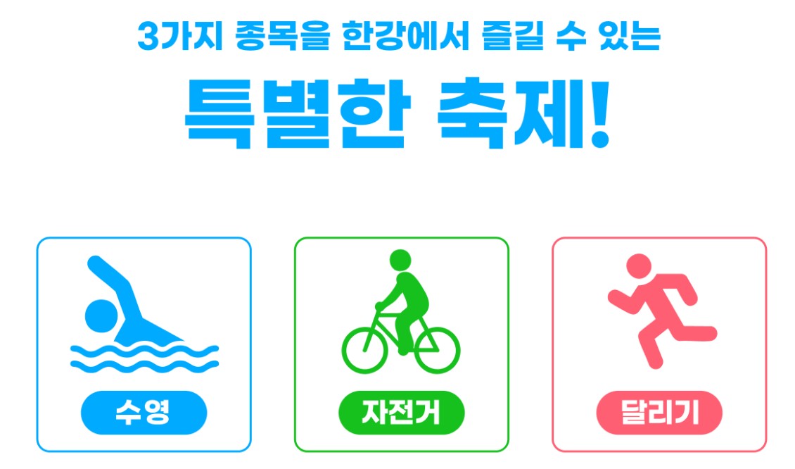 철인 3종경기는 경험이 없어도 참여 가능하나, 한강 수영은 안전을 위해 수영 경험이 있는 분들께 참여를 권장드립니다.
